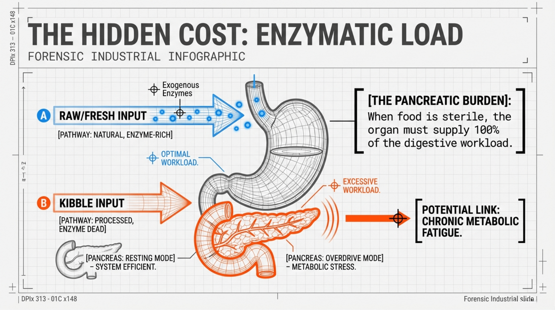 This is relevant when comparing dry diets to wet or minimally processed alternatives.
