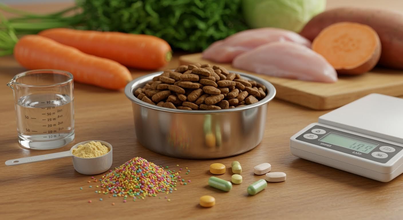 Commercial dry pet food is not nutritionally complete by default. It becomes “complete and balanced” only after synthetic vitamin and mineral premixes are added.